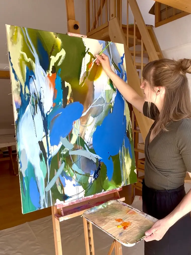 Außerdem besprechen wir, wo das Bild letztlich in deinem Raum Platz finden soll, sodass es seine ganze Wirkung entfalten kann.